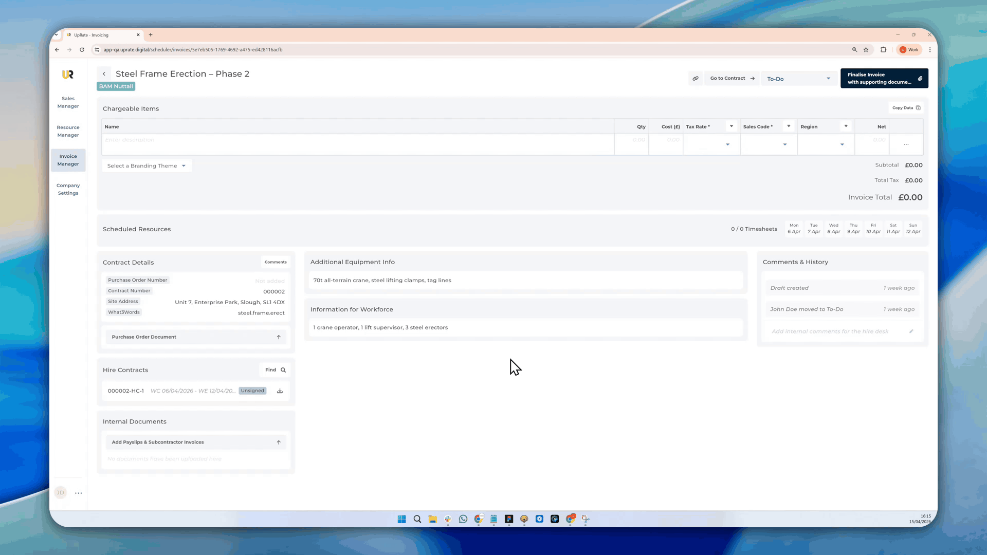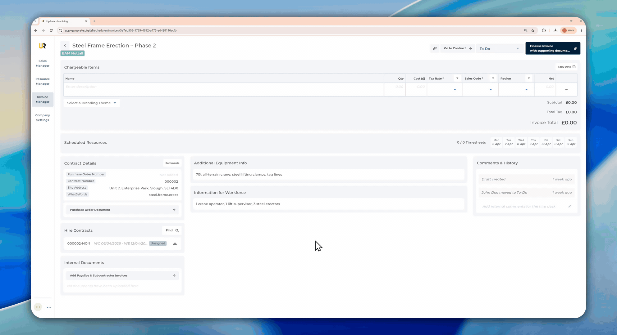 On the invoice page you have the ability to import Chargeable Items from a specific Hire Contract to make your operations more streamlined.