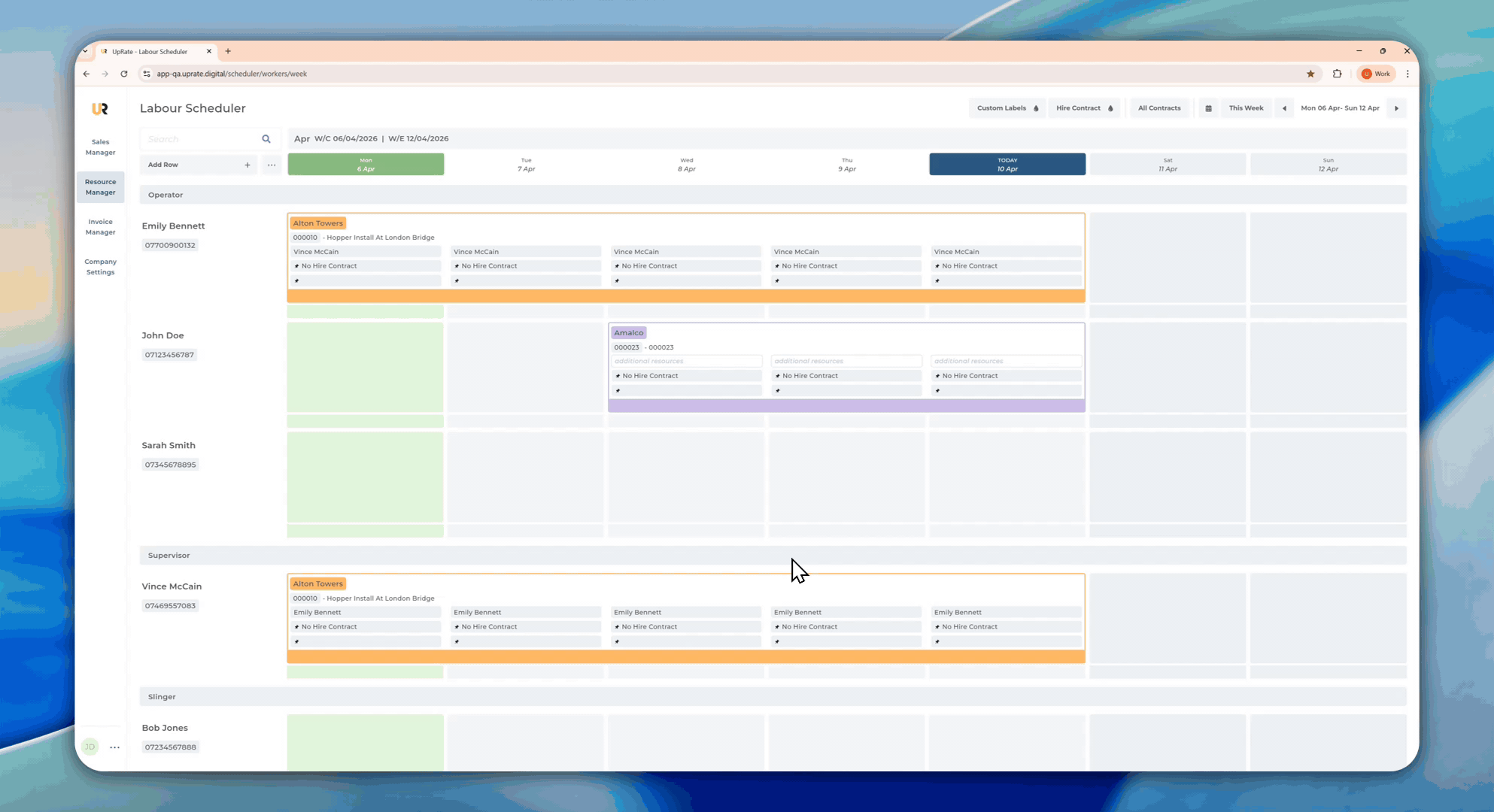 Go to the Sidebar Navigation to switch between Labour or Asset Scheduler view